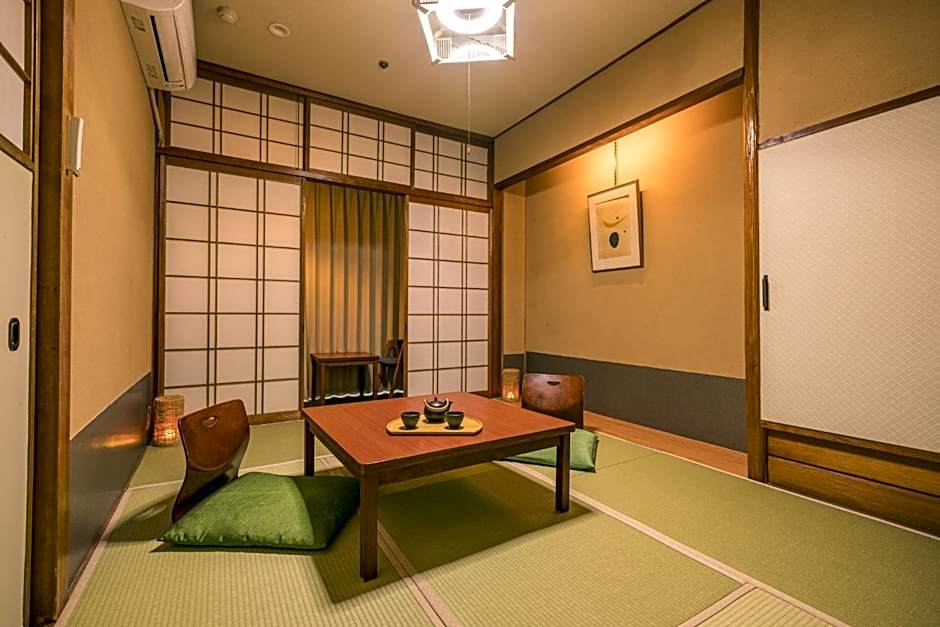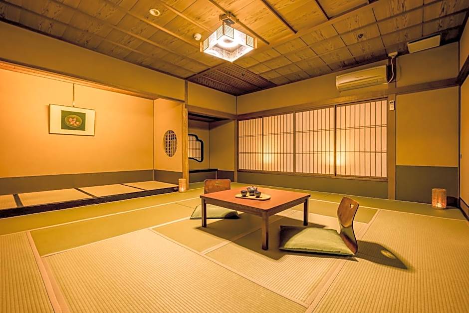 The spacious family room provides air conditioning, tatami, as well as a private bathroom featuring a bath and a shower. The family room features a safe deposit box, an electric kettle, yukata, heating and a flat-screen TV. The unit offers 5 futons.