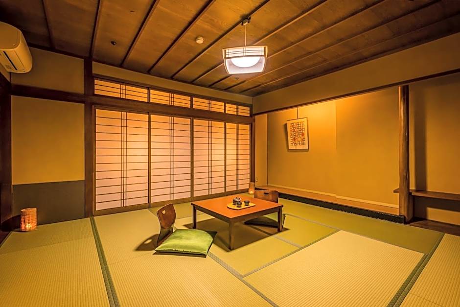The spacious family room features air conditioning, tatami, as well as a private bathroom boasting a bath and a shower. The family room provides a safe deposit box, an electric kettle, yukata, heating, as well as a flat-screen TV.